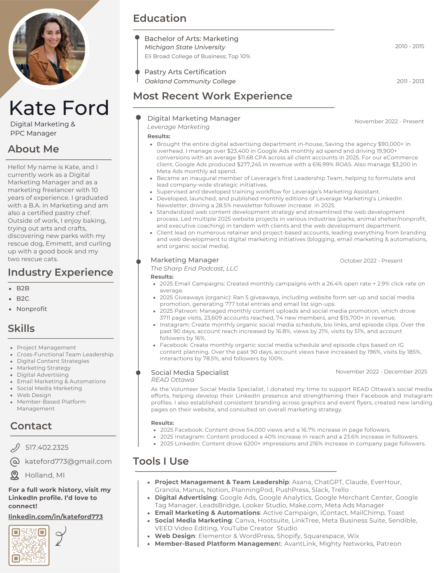 Thank you for taking the time to review my resume. For additional information about my work with Leverage Marketing, READ Ottawa, or The Sharp End Podcast, please visit my portfolio pages.